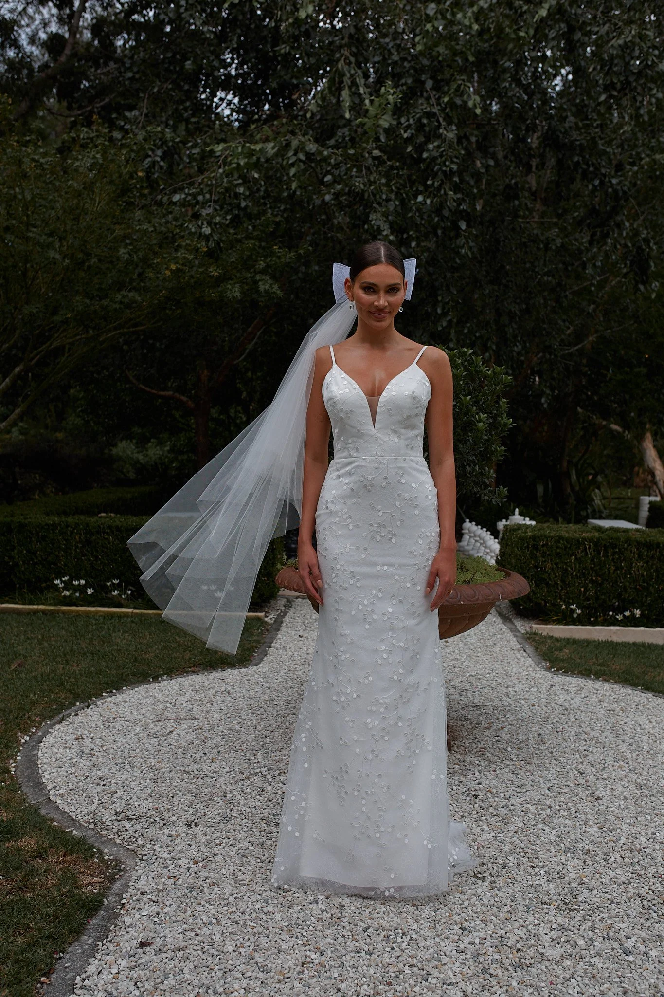 Snapdragon offers a sleek and flattering silhouette that is perfect for the modern bride. Featuring delicate spaghetti straps and a plunge neckline with an illusion tulle center front cutout. She strikes the perfect balance between allure and elegance. Designed with comfort and support in mind, Snapdragon boasts built-in bra cups, boning, and soft fusing to create impeccable bodice construction. The sheath silhouette accentuates your curves, while the option to order with a lined or unlined back adds versatility to the design. Complete with an invisible zipper opening.